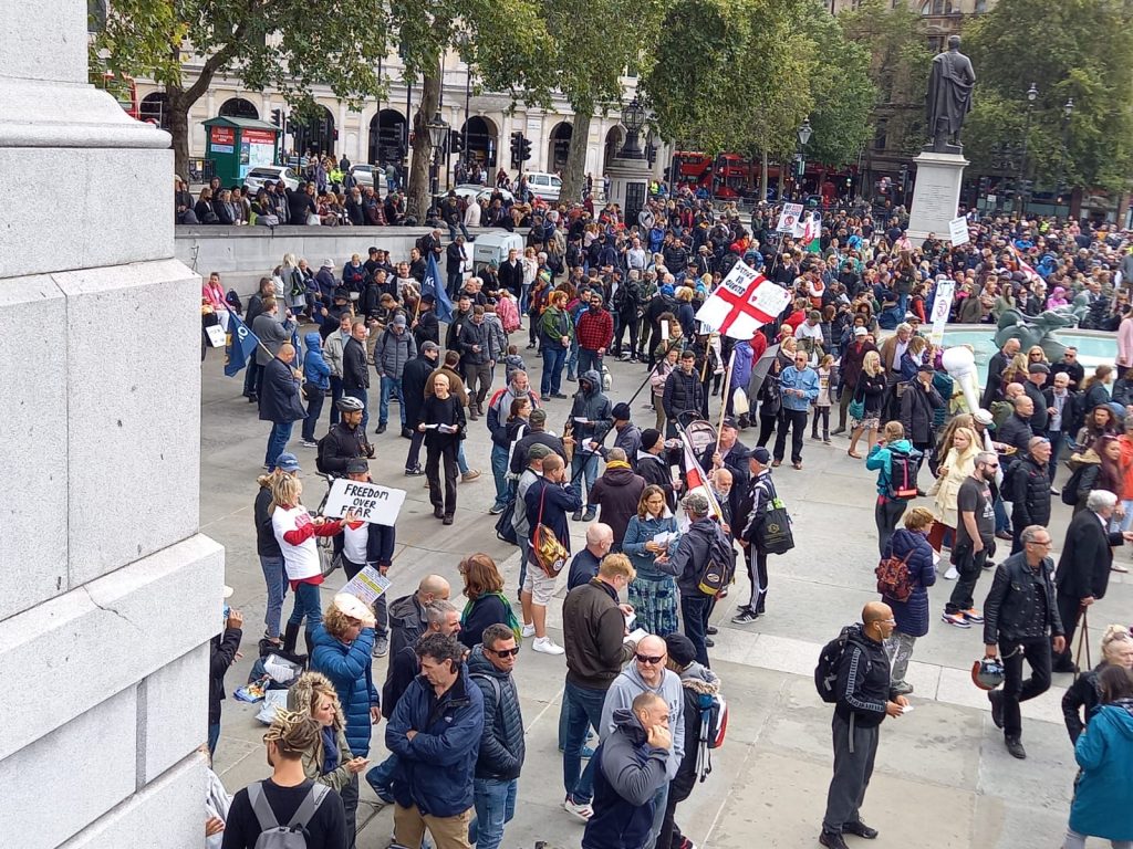 On Saturday (26 Sep) afternoon, 6,000 to 7,000 gathered on the anti-lockdown protest in Trafalgar Square.
