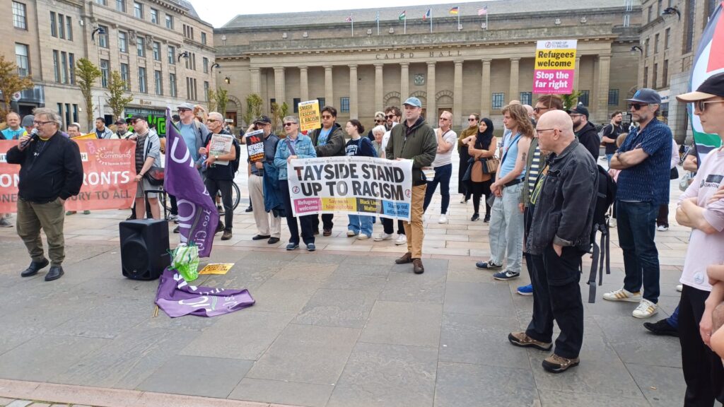 - Leading blocs at the counter-protest to the Far Right ‘unity rally’ in Glasgow in September, the Scotland Demands Better National demonstration in Edinburgh in October, the St Andrews Day annual march in November, the Falkirk unity demonstration in December and supporting anti-racists in Aberdeen.