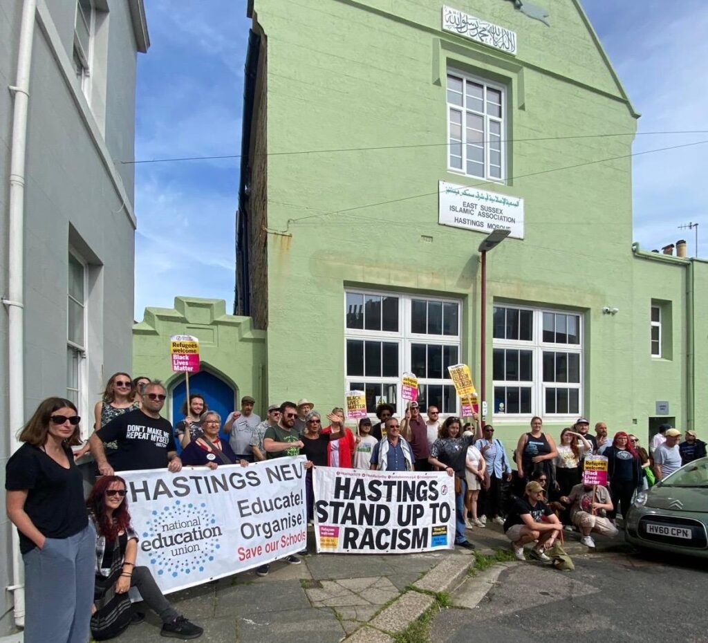July: Mobilised for counter-protests against Pink Ladies and Far Right protests outside the Britannia Hotel, Isle of Dogs, starting 23rd July, going on into September. Contingents included local NEU, Tower Hamlets College UCU, Labour Party and local GPs.