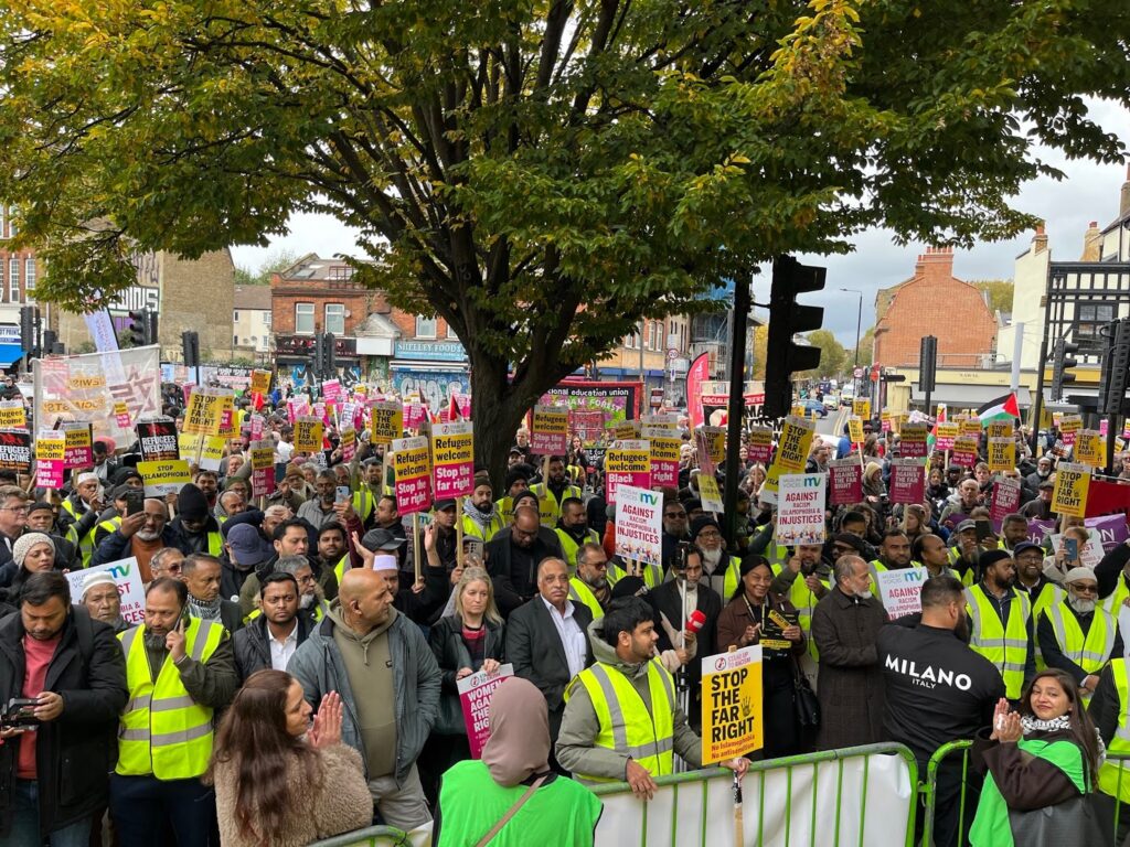 October: Our counter-protest outnumbered and marginalised the Pink Ladies Protest outside the full council meeting in Whitechapel, when the council adopted a strong anti-racist policy in response to the anti-migrant protests at the Britannia Hotel. SUTR public meeting in a church on the Isle of Dogs closed down because of Far-Right disruption. There had been extensive leafleting for the meeting at DLR stations, around workplaces and the local ASDA. One leafleteer was attacked outside a local primary school. Attended anti-fascist rally at Rich Mix where Zarah Sultana, Ben Jamal, Apsana Begum, etc were speaking. Helped organise and mobilise for the 25 October “Unity” Demonstration in Whitechapel against Tenconi and UKIP.