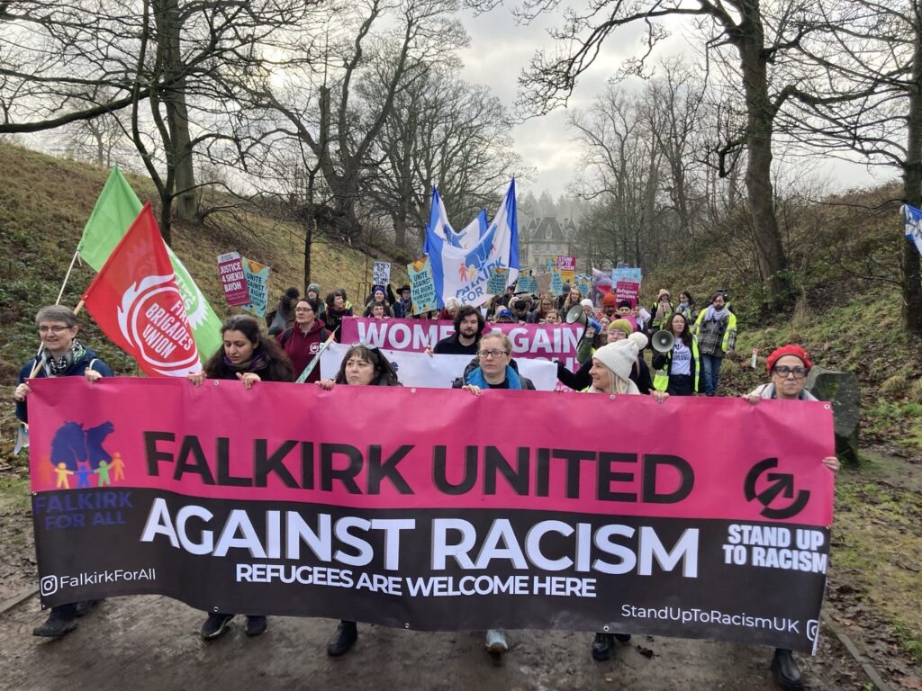We have consistently been present at counter-protests outside the Cladhan Hotel in Falkirk, standing against Far Right intimidation and in solidarity with refugees.