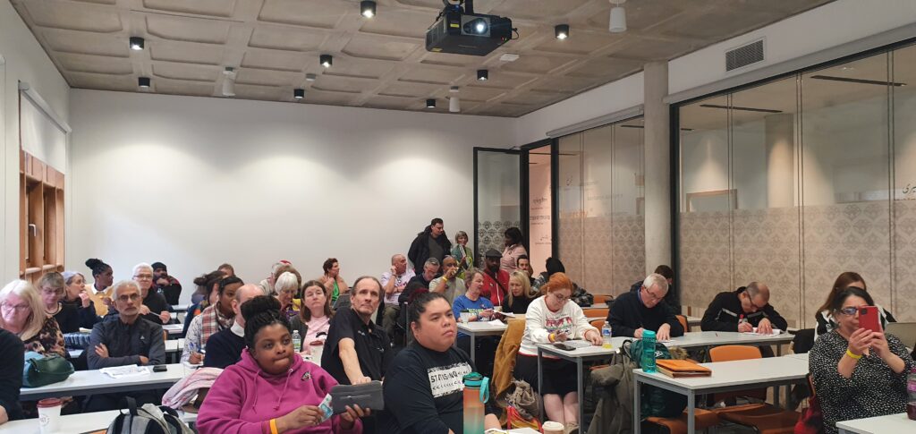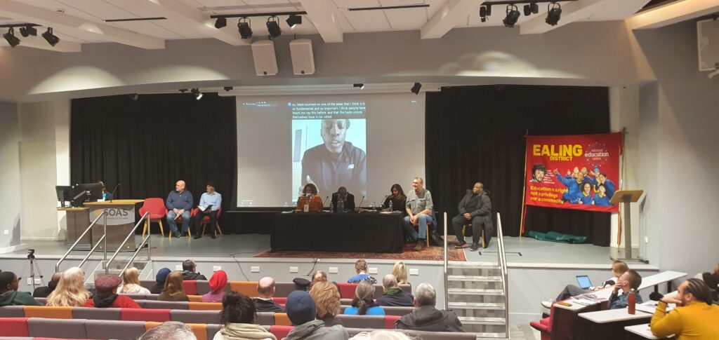 Each of the three workshops was packed out in the break out rooms at SOAS, with similar numbers online to those in each room. Many unions had good delegations present, including via Equalities networks and through union branches and workplaces.