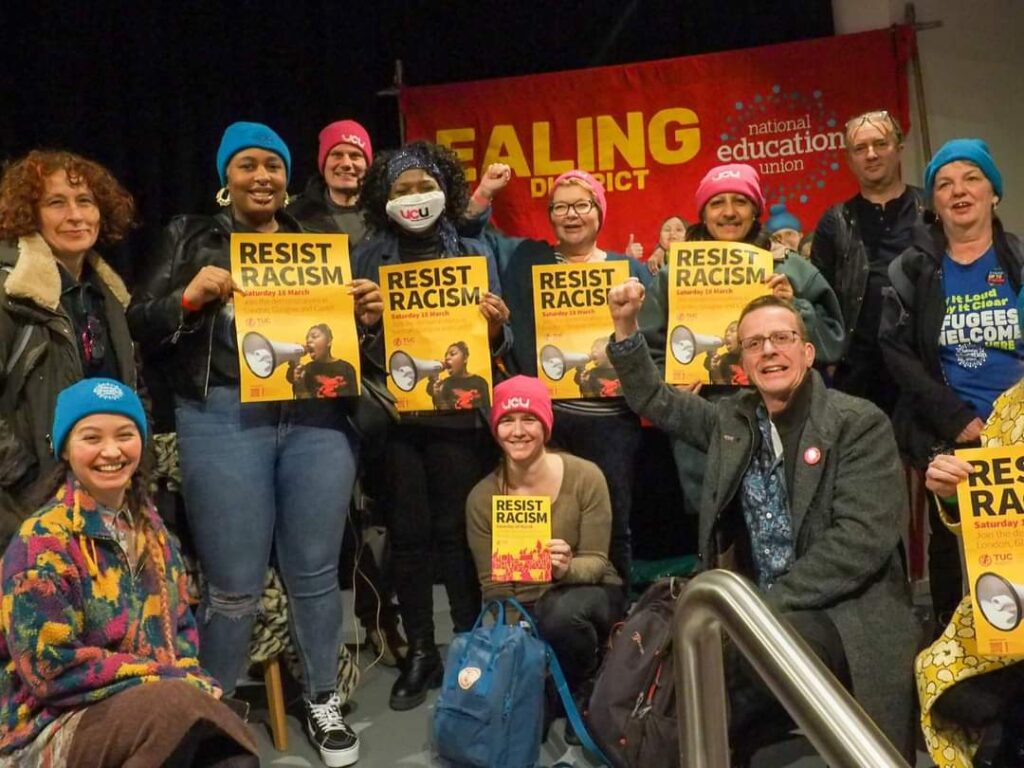 In the outcomes for the workshop, there was a pledge to mobilise again, as was done successfully with unions at the heart of a broad and united coalition, to #StopRwanda deportations, as the Care4Calais and PCS legal team push to appeal the court decision that the policy is lawful. Crucially, building for unions to deliver big delegations onto the 18 March #RESISTRACISM demonstrations in London, Glasgow and Caridiff with refugees welcome blocs and trade unions and strikers leading the front of the marches alongside refugees saying we reject the politics of divide and rule, is a key focus in the coming weeks.