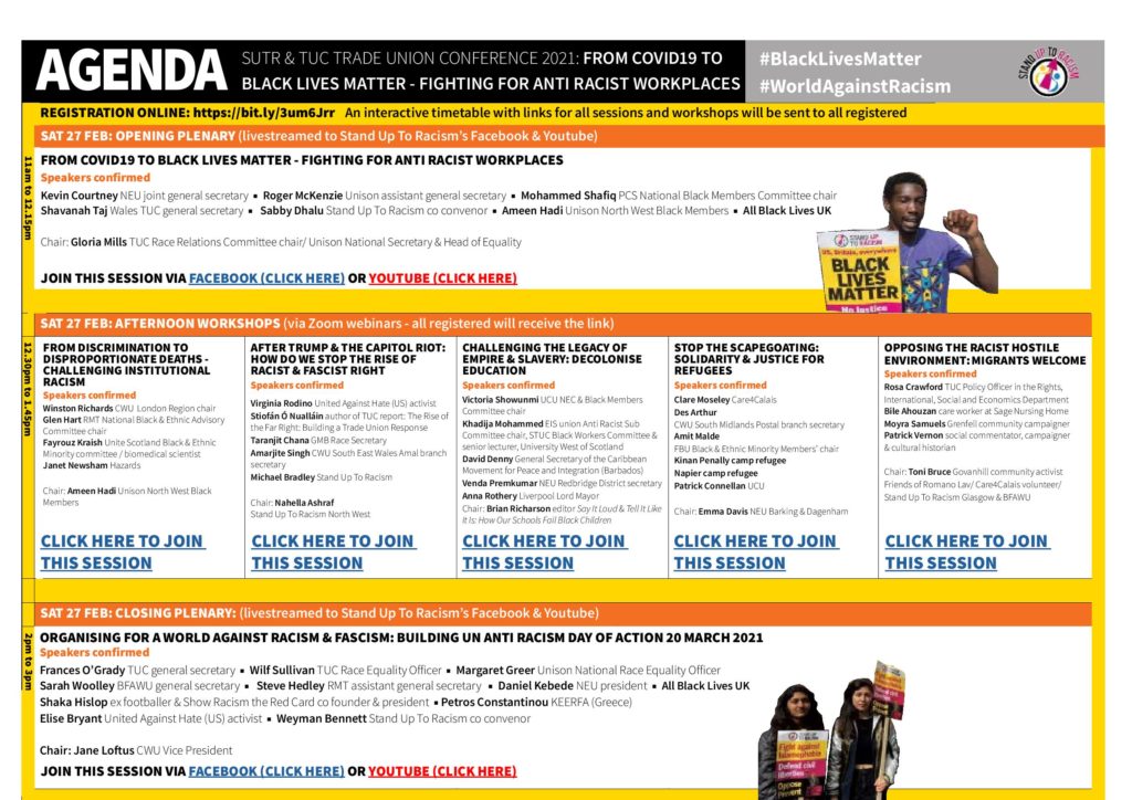 More than a thousand trade unionists and workplace activists took part in Saturday’s online conference organised by the TUC and Stand Up To Racism, ‘From Covid19 to #BlackLivesMatter – Fighting for Anti Racist Workplaces’.