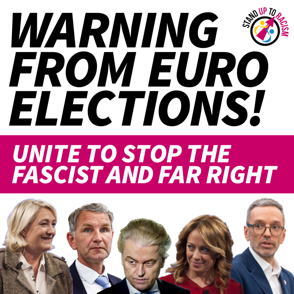 Fascists and the far right have swept the board across the European Elections. The results are a stark warning that must sound the alarm for anti racists and anti fascists everywhere to urgently organise and build movements to challenge and oppose racism and division and to expose the fascists.