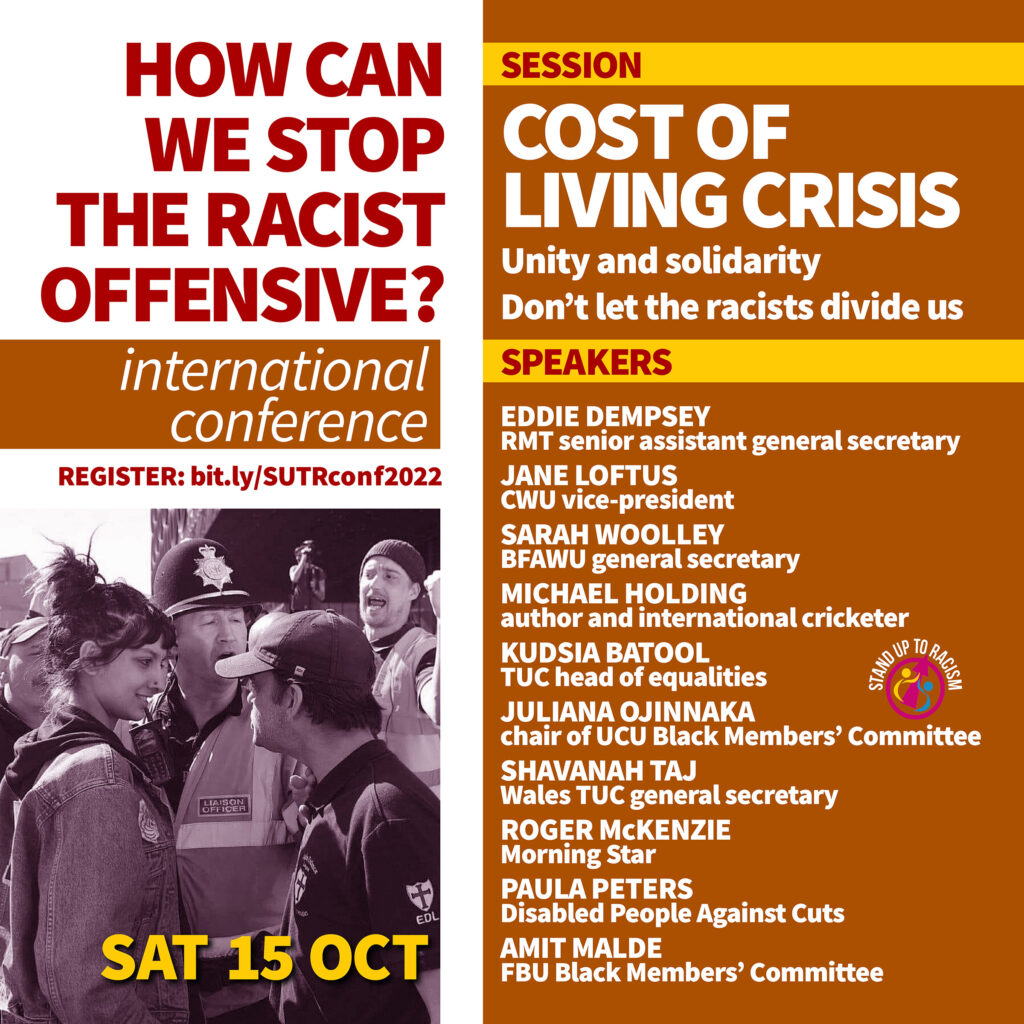Anti racists from across Britain and the world will converge in central London (and the conference will run as a hybrid with online access to participate) to discuss action, strategy and ideas for building the growing movement against racism. Confirmed speakers so far include: