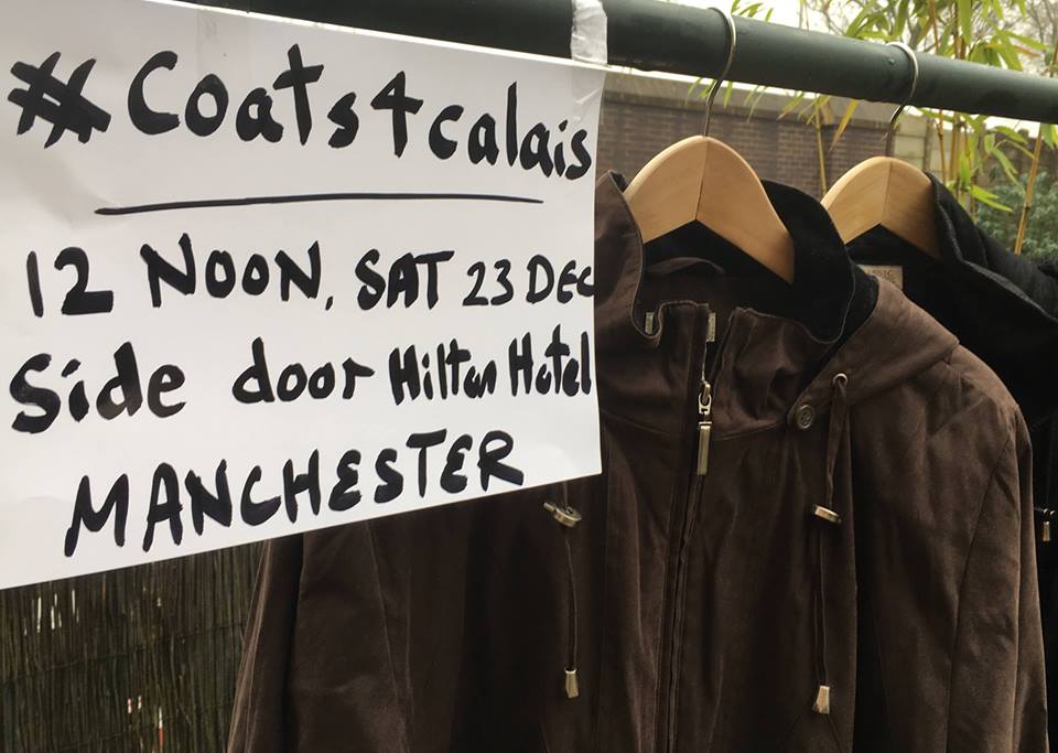 Bring coats for refugees to the side door of the Hilton Hotel on Deansgate in Manchester. Care4Calais will collect and take over to give to refugees in Calais.