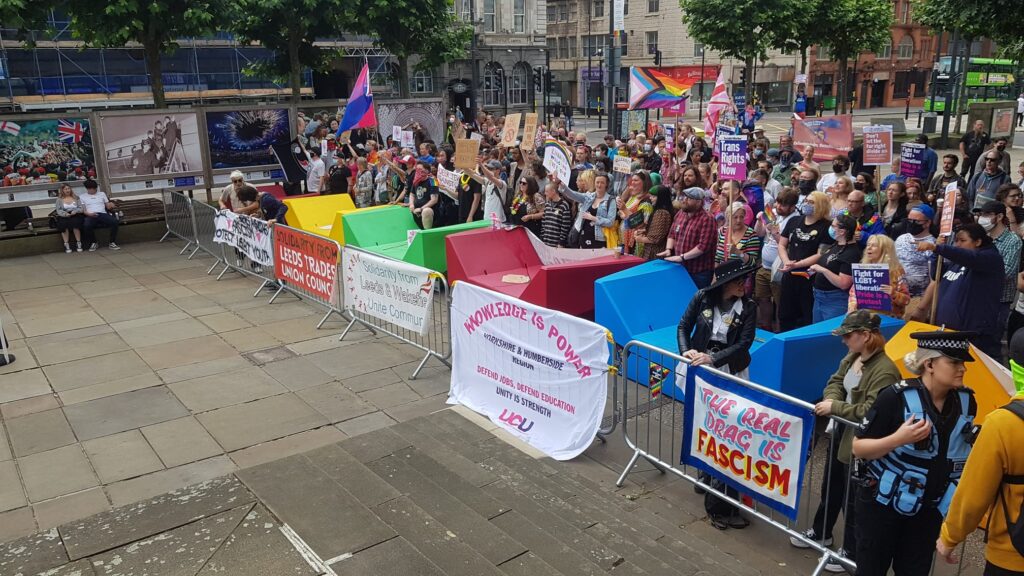Over 300 people rallied in Oxford on Tuesday to show their support for Drag Queen Story Hour. The protest turned into a beautiful carnival of resistance and LGBTQ+ pride with hundreds of people dancing in the streets. Rallies have been held throughout August, including Oxford, Norwich, Leeds and Brighton in response to the far right picketing these inclusive events at local libraries to spew their divisive message of hate.