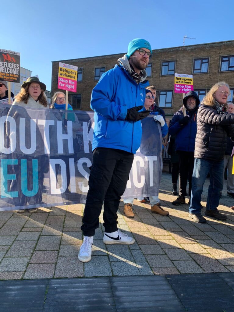 Determined protesters on a counter demonstration against the far right in Dover on Saturday 11 January. It was a no show from the fascists. It was the same story in Gt Yarmouth – a no show by the far right.