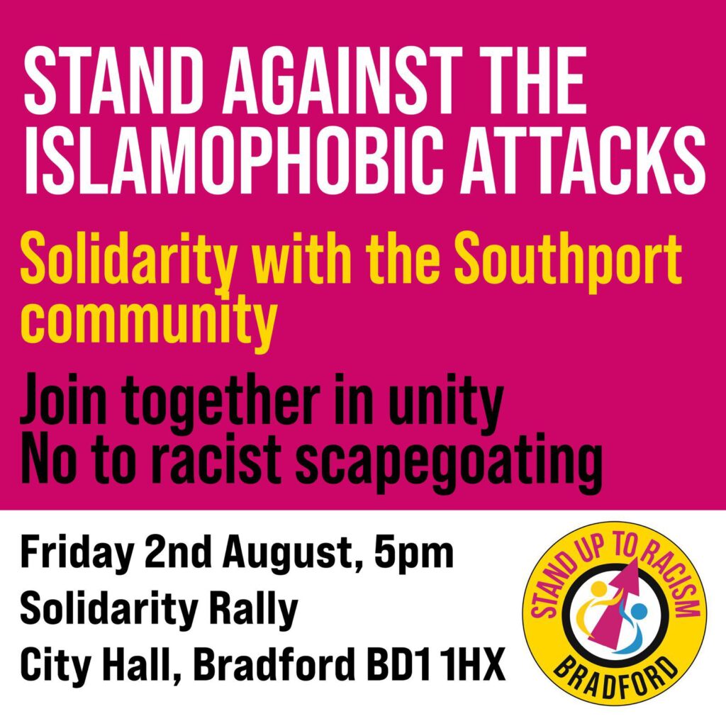 👆 Bradford Solidarity Rally, Friday 2nd August 5pm , City Hall, BD1 1HX