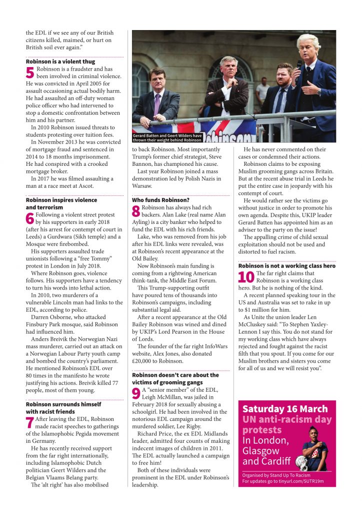 Factsheet: Ten things you need to know about the fascist Tommy RobinsonBy standuptorac / 29 November 2018 Place your orders for local groups, unions etc by emailing [email protected] £10 for 500 £20 for 1000 £40 for 2000