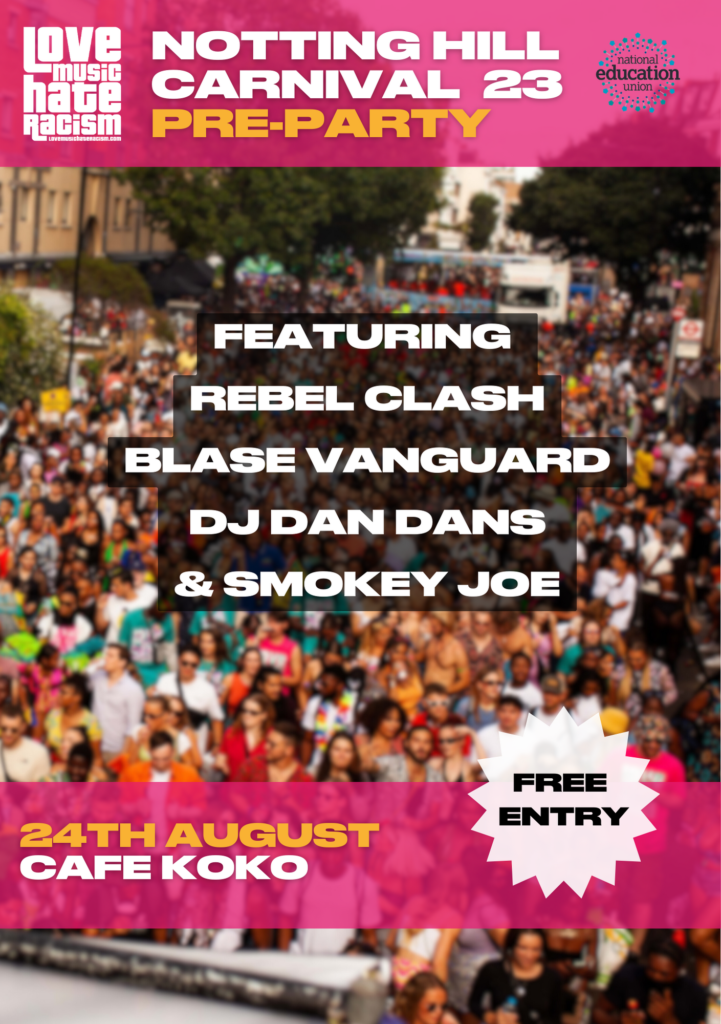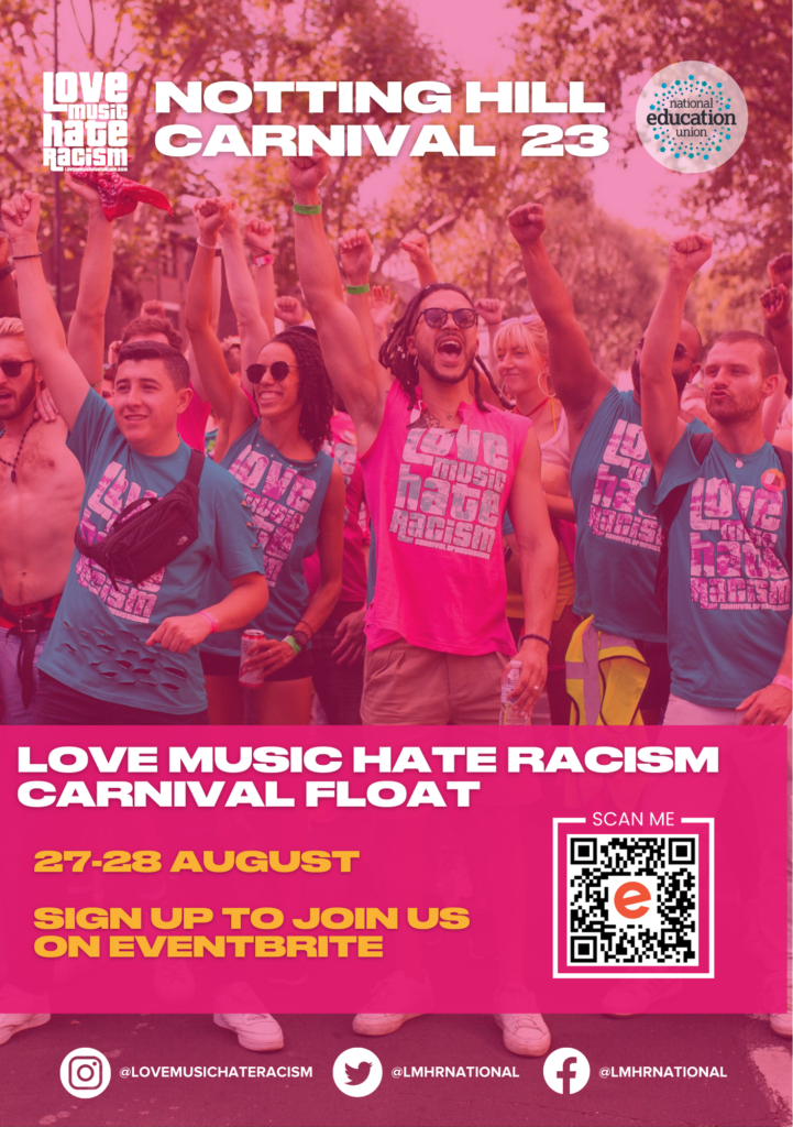 | ShareTweetForward August sees the return to the streets of one of Britain’s most important cultural celebrations: the Notting Hill Carnival will take place on 27 – 28 August 2023. Love Music Hate Racism (LMHR) is again gearing up for a strong showing on the streets for carnival, bringing the anti racist message and partying with a purpose… We want you to join us in the carnival parade – follow this link to register! The theme of the 2023 Notting Hill Carnival float seeks to celebrate workers’ collective resistance during a time of multiple crises by paying tribute to key struggles of the 1970s. The float will act as a tribute to the historical role of carnival as a form of cultural resistance during economic and social crises. Today we draw strength from past collective struggles as we fight for a just society. |