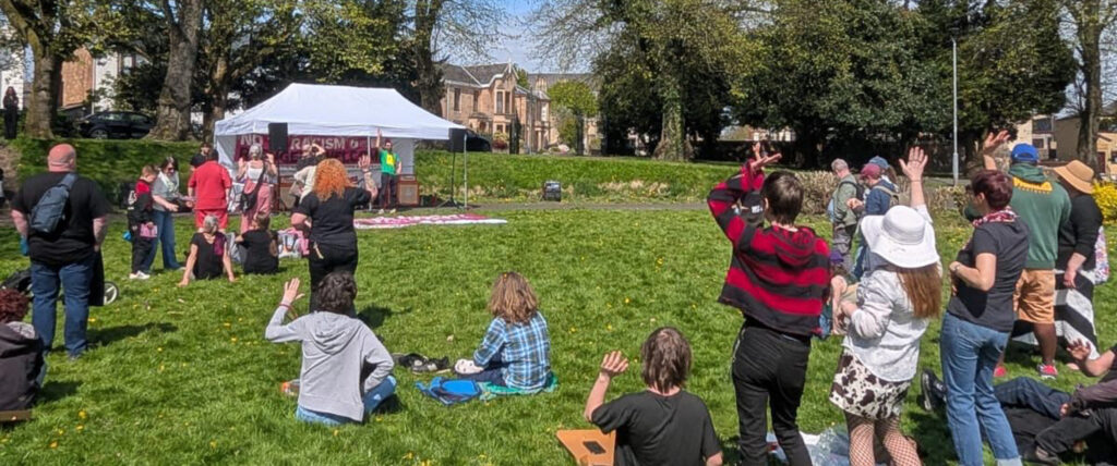 With great political speeches from Claire Leitch, East Ayrshire Provost, Women Against the Far-Right, Falkirk For All and many others. The sun was shining, the music was blaring and anti-racism everywhere you turned!