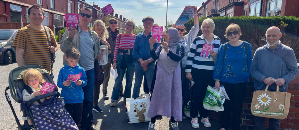 Very successful 2 hours leafletting in sunny Manor Ward, Trafford today – 10 of us. Overall people were glad we were there – some people thanking us.