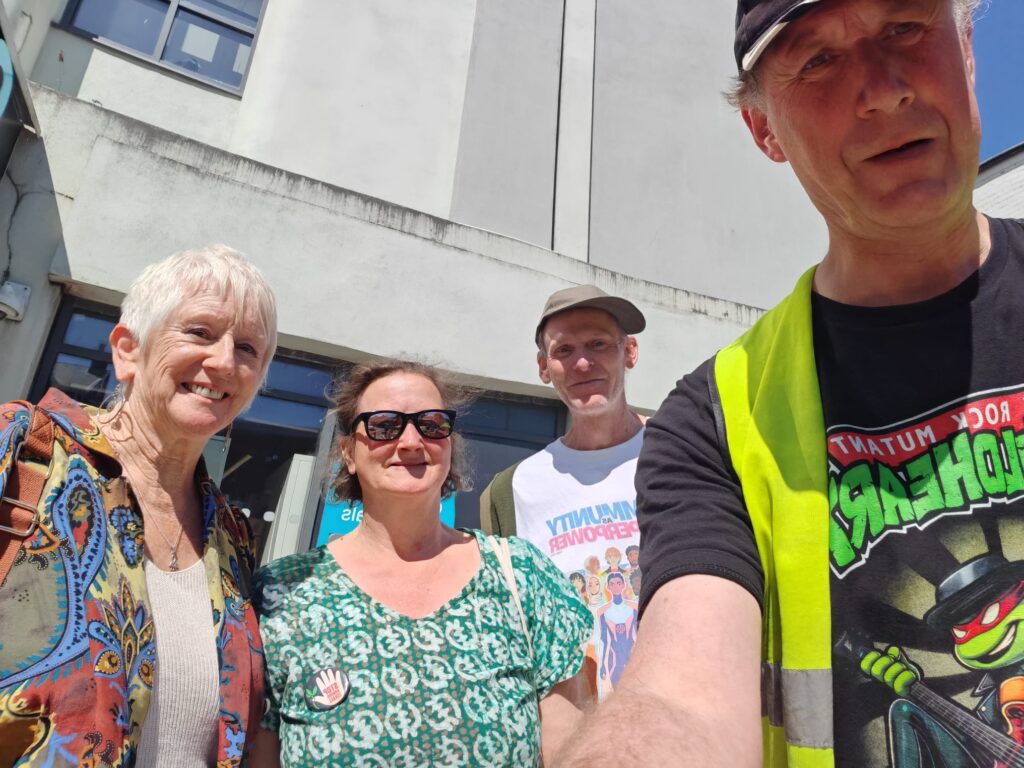 Merthyr Tydfil: Fantastic action today, with a stall and leafleting action in Merthyr. Some great responses and conversations and Phil convinced a potential Reform voter to not vote Reform.