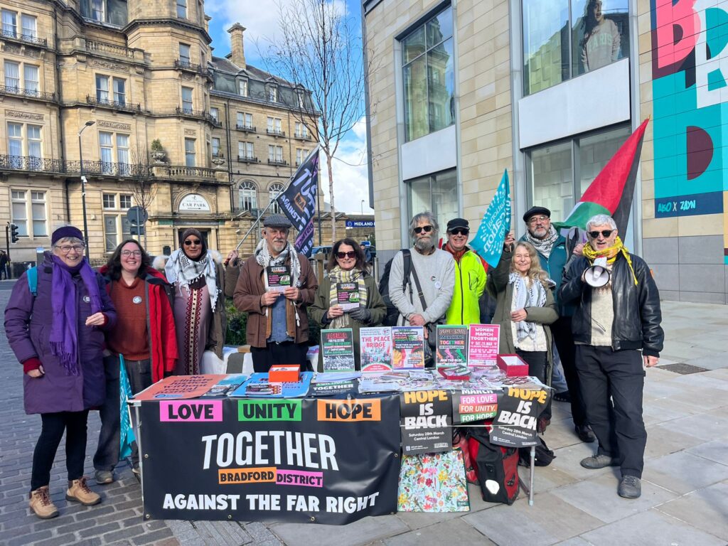 Excellent turnout for today’s Bradford Together Alliance leafleting, with a fantastic response from people across Bradford. The message was clear: Bradford is anti-racist, and Bradford is united. Solidarity