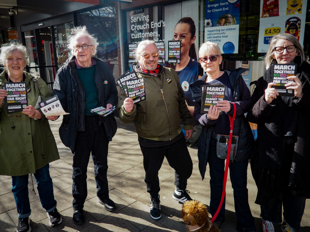 Against the far right. @nationaleducationunion Educators union and local activists flyer in Crouch End on Saturday 14 March the @togetheralliance day of action building for the demonstration against the far right on 28th March