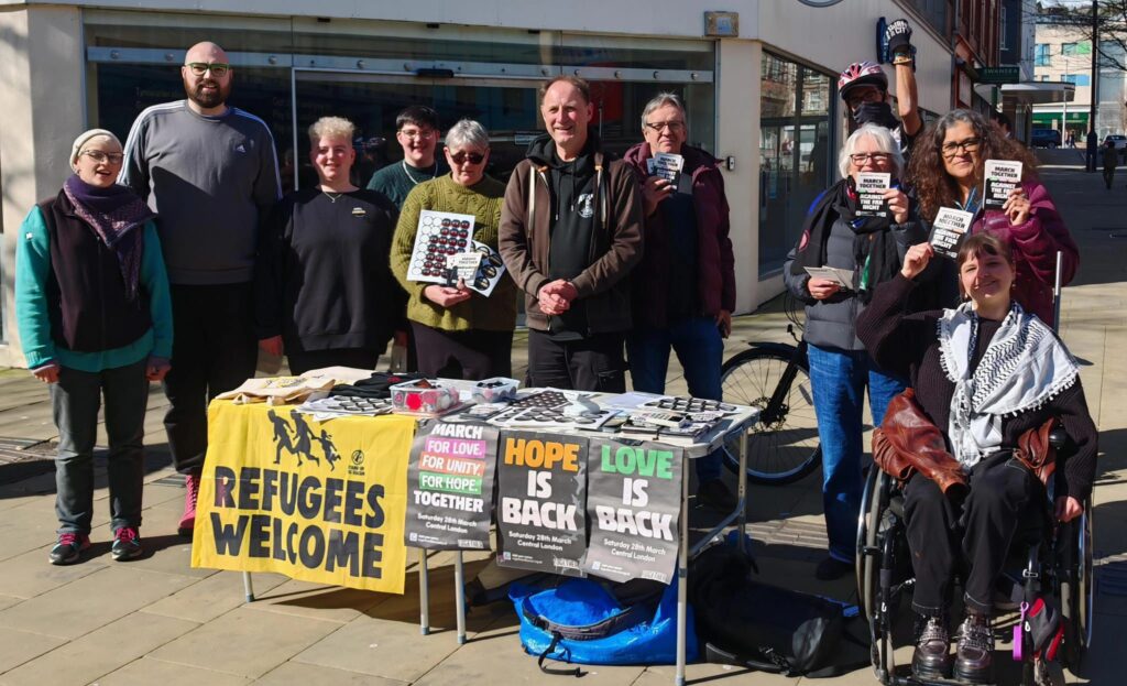 This weekend campaigners were out distributing tens of thousands of leaflets, posters and stickers to build the Together alliance demo, planned for London on Saturday 28 March.