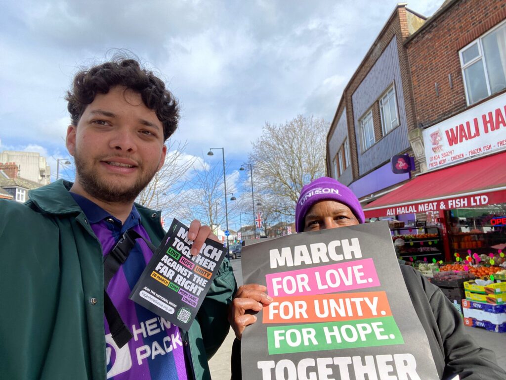 We had a great Day of Action in Croydon! 500 Together Against the Far Right leaflets given out as well as posters and stickers. An Islington Unison rep stopped to help us.