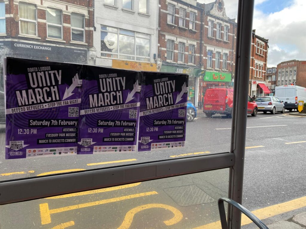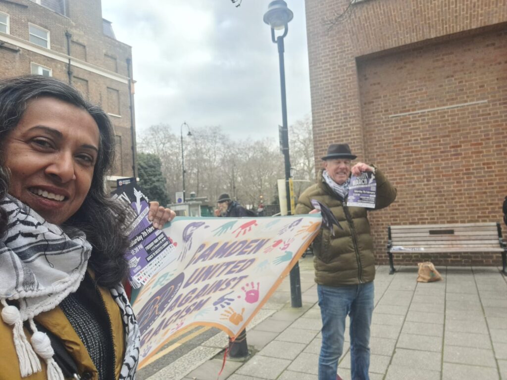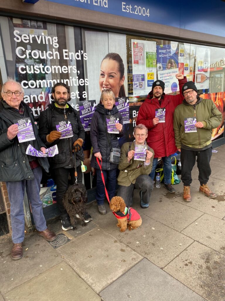 Image: Camden United Against Racism activists out leafleting for the North London Unity march