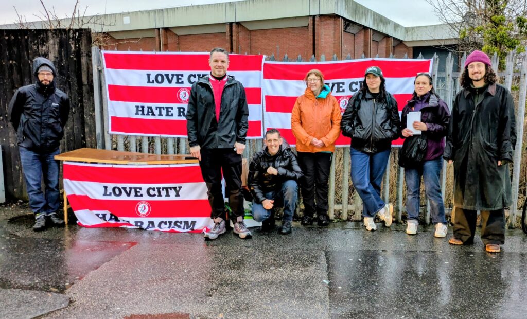 Image: Leafletting for Bristol Unity march outside Bristol City women’s match