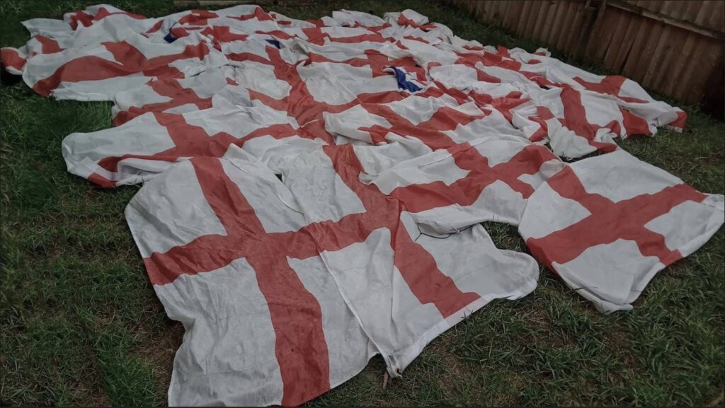 Community action in Hillingdon saw anti-racism activists clear entire streets of flags in hotspots including West Drayton ahead of a planned far right march this weekend. Several sack loads were removed with a clever one pull gadget.