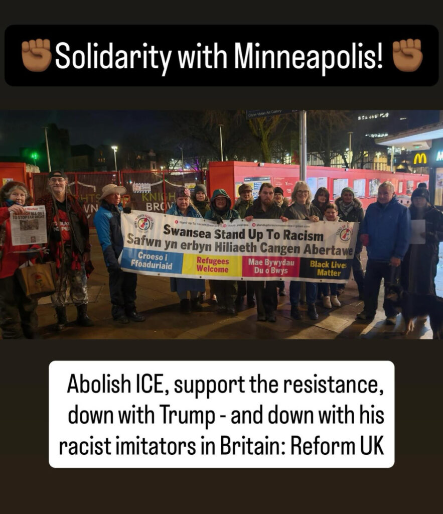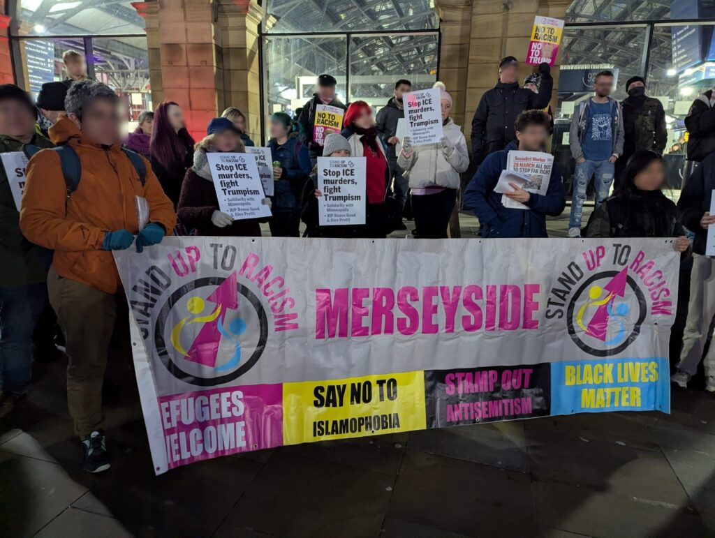 At short notice, an emergency protest was called in solidarity with the people of Minneapolis and in opposition to ICE violence, including the brutal murders of Renee Nicole Good and Alex Pretti and the abductions and deportations of migrants and people of colour. About 85 anti-racists gathered. We drew clear connections between Trump’s racism and the rise of the far-right, including Reform UK in Britain. We also opposed concessions to racism by the UK government and repressive state policies towards refugees, asylum seekers and migrants.