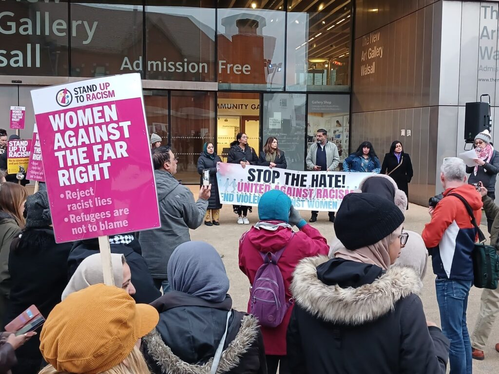 140 joined the Walk With the Women of Walsall on Sunday 16th, united against racism, misogyny & hate. A SUTR activist reported “We started with 3 short speeches and had 3 stops for more speeches. 12 speeches altogether from women representing 10 organisations including SUTR, Women Against the Far Right, the Trades Council, local Palestine group, Walsall Black Sisters and a local Asian Women’s centre. Really positive and a lot of new contacts made”