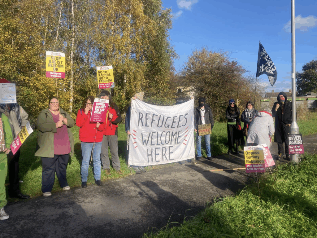 Image: Anti-racists mobilise in Leeds to defend refugees at a hotel in Seacroft on Saturday November 1st.