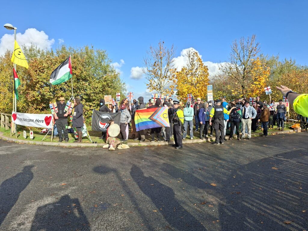 In the hotel near Exeter airport today 90 anti racists faced off against 13 demoralised Britain First members and hangers on. We had significant numbers of staff from Exeter university and Prospect union members from the Met office. Another group of SUTR supporters leafleted Exeter high street at the same time for our big counter demo on the 22nd of November.