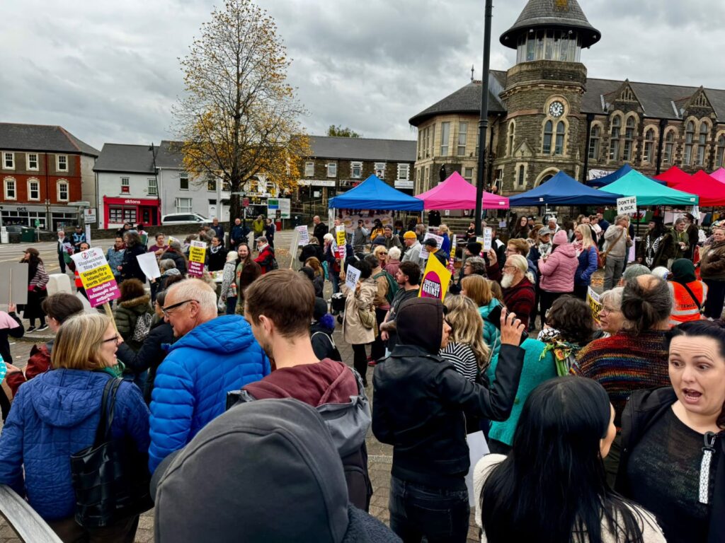 There were up to 150 people on the strong counterprotest in Caerphilly, against a far-right called protest against the “Nation of Sanctuary”. We outnumbered the far-right 10 to 1 and had a great positive energy, including some very good speeches by local people, Ukrainian refugees, migrants and Palestine Solidarity Campaigners.