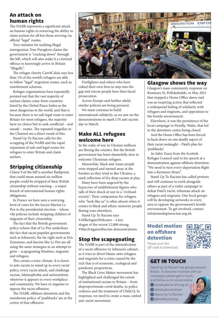 Stand Up To Racism calls for the scrapping of the NABA and the rapid expansion of safe and legal routes for refugees to enter Britain and claim asylum.