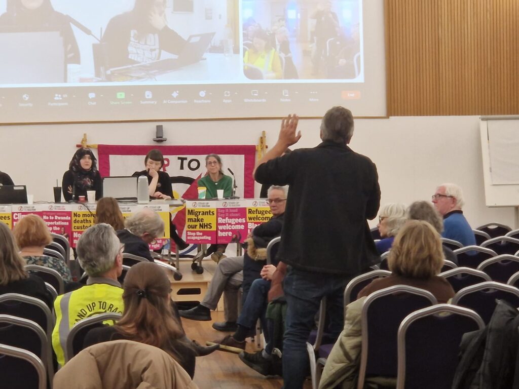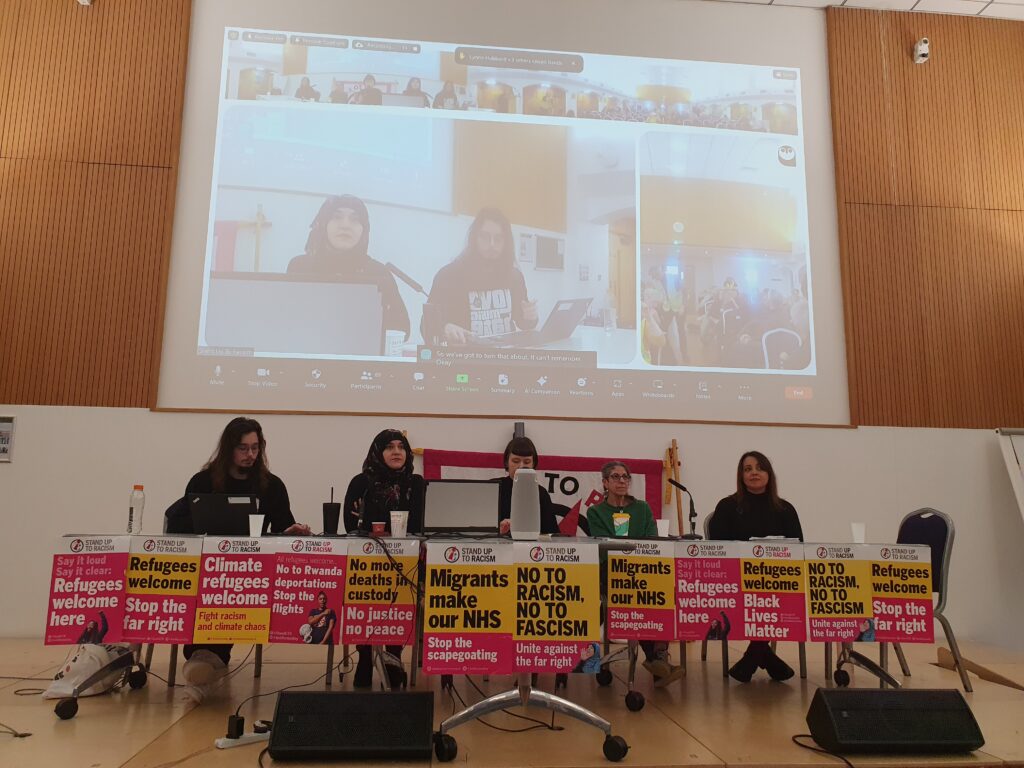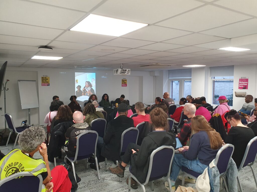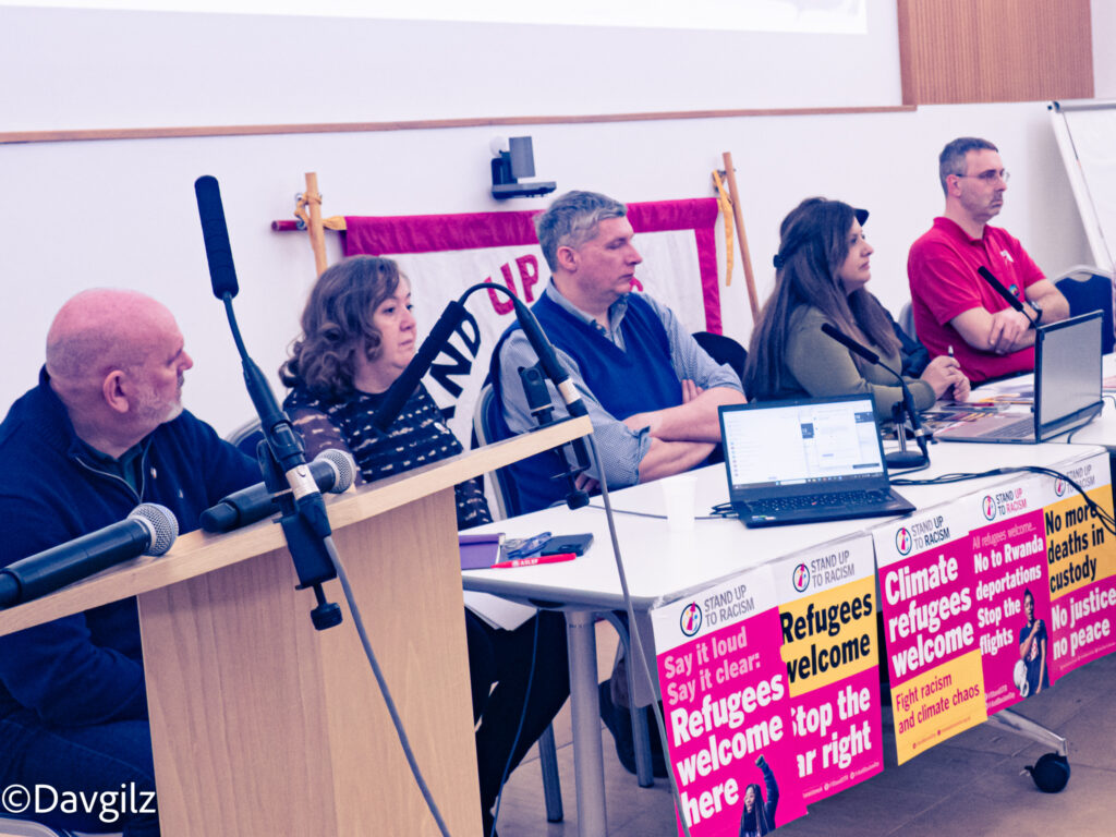 A workshop on Building Solidarity with Refugees and Migrant Workers was introduced by Fran Heathcote PCS general secretary, Kebba Manneh Unison National Black Workers Committee chair, Charlotte Khan Care4Calais, and Candy Udwin Dorset Stand Up To Racism & campaign against Bibby Stockholm Barge, hosted by Wilf Sullivan Stand Up To Racism national officer.