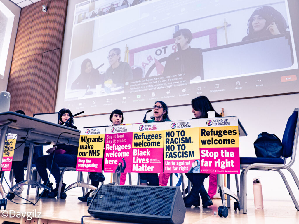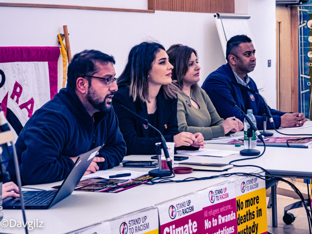 The conference started off with an opening plenary: Opposing scapegoating and the growth of the far right, with Riz Hussein TUC Race Equality Officer hosting a panel including Maryam Eslamdoust TSSA general secretary, Paresh Patel Unite Midlands regional secretary (speaking on behalf of the general secretary) and Sabby Dhalu Stand Up To Racism co convenor