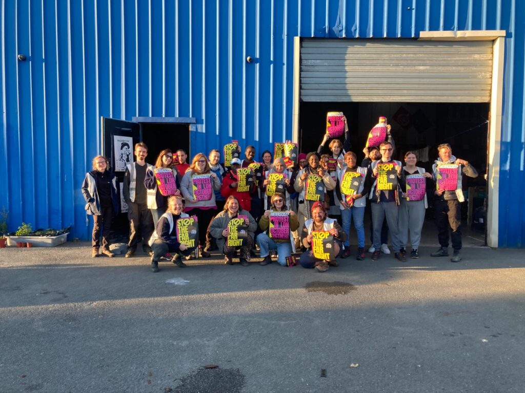 Michael reports – NEU members at the Care4Calais warehouse in northern France say “Stop the Far Right – Say It Loud Say It Clear, Refugees Are Welcome Here” ✊🏾✊🏿✊🏻