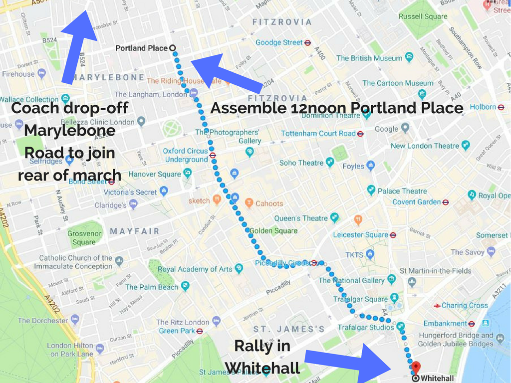 COACH DROP-OFF: MARYLEBONE ROAD TO JOIN BACK OF MARCH ON PORTLAND PLACE