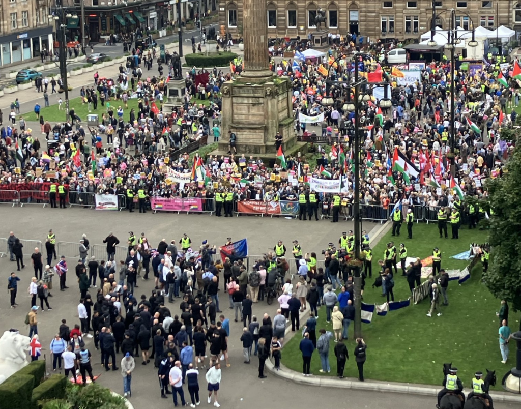 The fascists (in the foreground in the pic below) were outnumbered 10 to 1 in Glasgow on 7th September – let’s do the same in London.