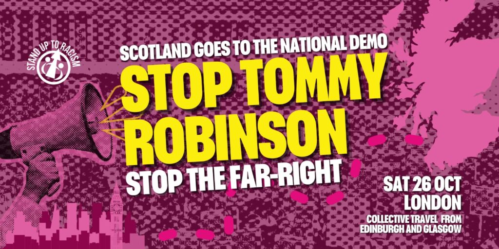 Scotland Stand Up to Racism is mobilising to get a large number of anti-fascists from Scotland to join SUTR & @The_TUC on the UK-wide demo in London on 26 October.
