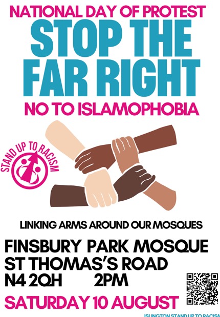 North London Finsbury Park _ Finsbury Park Mosque St Thomas’s Road N4 2QH – 2pm. Link arms around our mosques