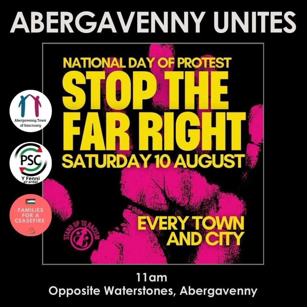 Abergavenny (South Wales) unites against the far right and racism. 150 people and very well received by passers by in the busy town centre.