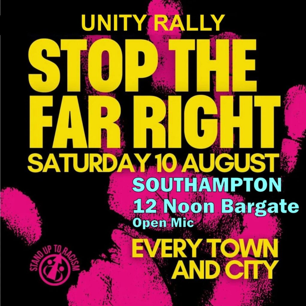 12 noon – Hastings Town Centre Robertson St, outside Owens – STOP THE FAR RIGHT UNITY RALLY