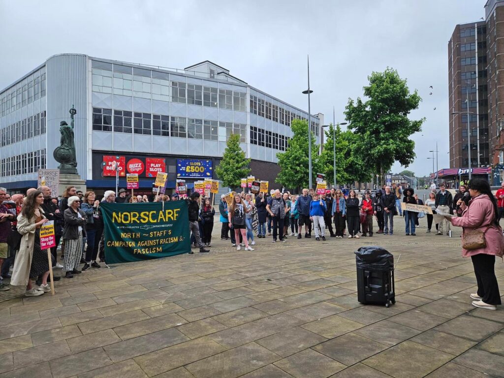 150 on stoke antiracism protest yesterday. We had 9 unions represented by speakers and lots other representing various groups – a majority being women and/or not white. Apart from local Palestine demos I don’t think I’ve ever witnessed this level of participation. Big leaps forward for antiracism movement in the city.