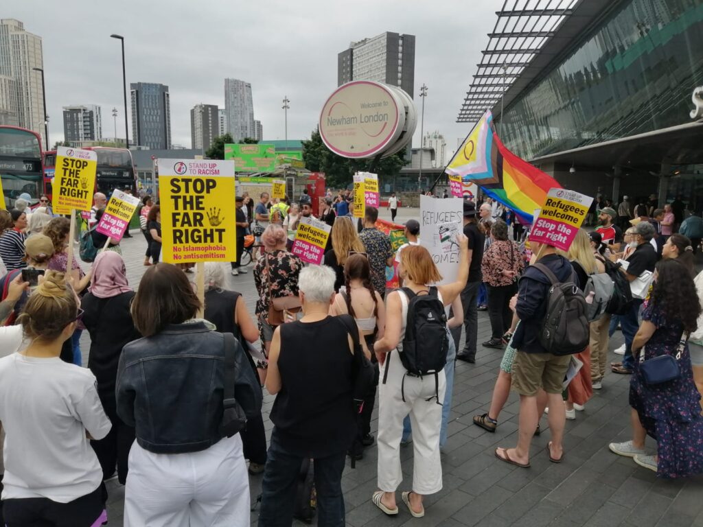 Around 150 people turned out today in Stratford for a brilliant and lively demo – loads of speeches and loud chants showing we are both diverse and united against the far-right ✊🏿✊🏼✊🏾