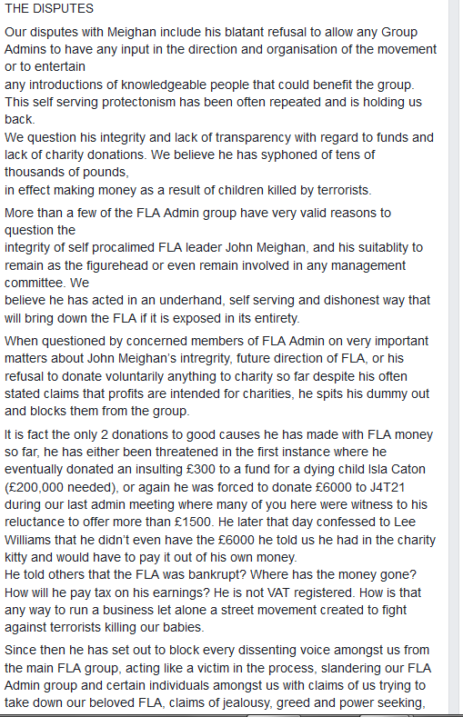 The veracity of these claims, coming from the sources they do has clearly done some damage to the FLA. Two rival groups claiming the same name would damage any organisation. A body, composed of ex and current hooligans, at odds with each other and making such accusations, could result in serious problems. It is alleged by ex FLA members that the HMRC asked to view FLA accounts.