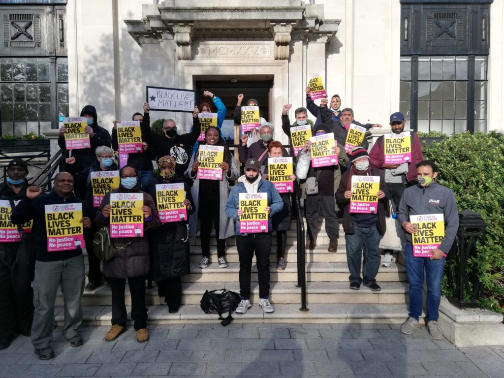 The week of action saw 300 trade unionists join a TUC and SUTR mobilising meeting on 17 May, and 300 join a major international rally on 22 May. It was to commemorate George Floyd’s murder 1 year on, and crucially, it was also about focussing the anti racist movement on its need to continue to demand action and force change on institutional racism and police violence.