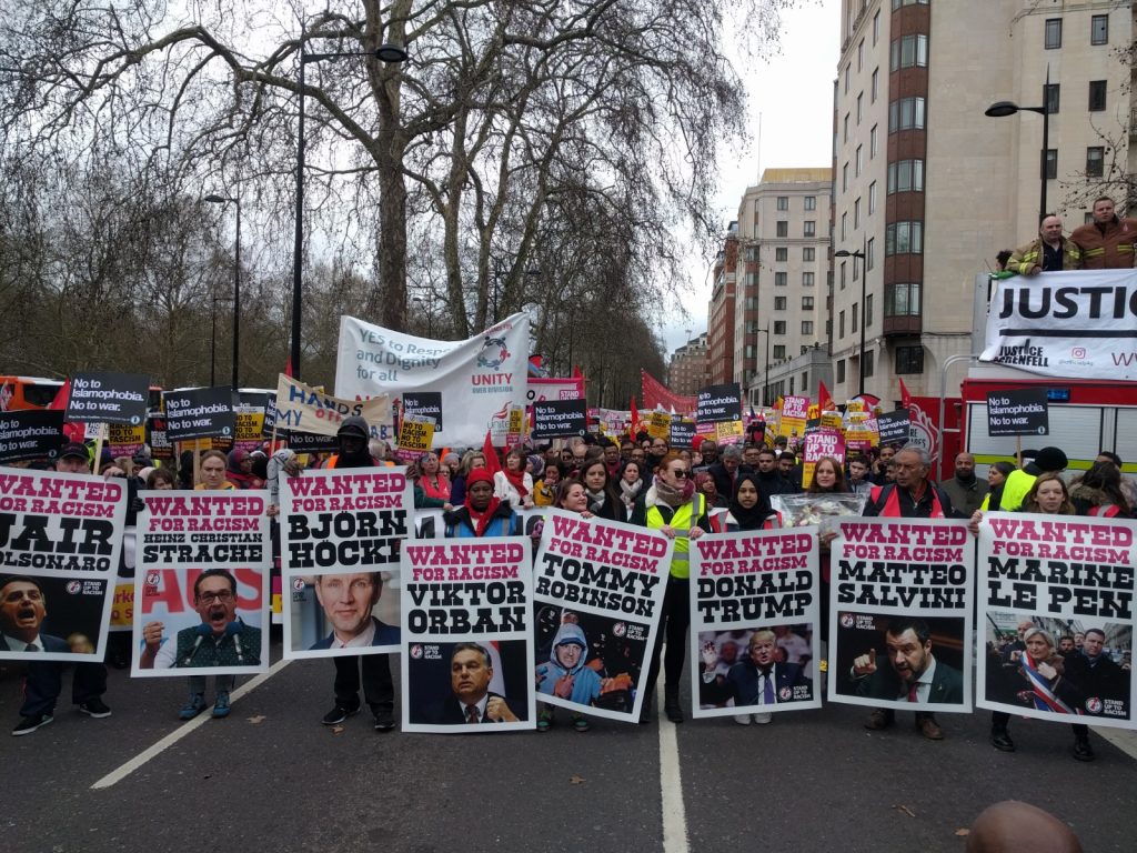 | PRESS RELEASE: for immediate release #WorldAgainstRacism international network calls day of mass global demonstrations on Saturday 21 March 2020 for UN Anti Racism Day ahead of major international conference this Saturday against racism, fascism, Islamophobia & Antisemitism Anti racist organisations operating nationally in twelve countries are taking part in a #WorldAgainstRacism summit in London (20 September) to organise a day of mass global demonstrations against racism and fascism on UN Anti Racism Day, 21 March 2020. The summit to discuss international plans for 2020’s UN Anti Racism Day demonstrations will take place the day after a major international conference in London organised by Stand Up To Racism on Saturday 19 October: ‘Challenging Johnson, Trump and the racist right: an international conference against racism, fascism, Islamophobia and Antisemitism’, headlined by shadow home secretary Diane Abbott. Speakers on 19 October also include Guardian journalist Gary Younge, rapper Lowkey, Ukrainian LGBT+ activist Vitalina Koval who was targeted in a hate crime enacted by the far right, MPs Richard Burgon and Emma Dent Coad, MEPs Claude Moraes and Julie Ward, representatives from Muslim and Jewish organisations, union leaders including Kevin Courtney of the National Education Union (NEU) and Mark Serwotka of the Public & Commercial Services Union (PCS), alongside international speakers and delegations. It takes place 9.30am to 4.30pm at Friends Meeting House, 173 Euston Road, London NW1 2BJ, with workshops and plenaries running through the day. The timetable can be viewed here In March 2019, #WorldAgainstRacism delivered mass demonstrations saying no to racism and fascism in over 60 cities worldwide. Next year, on 21 March, the network intends to deliver even larger mobilisations, in a growing number of countries. The network’s call states the importance of international coordination in challenging the rise in racism and fascism: “The dangers of racism and fascism are growing by the day. Racism, Islamophobia and antisemitism are on the rise everywhere. There is already growing resistance to the rise of fascism and racism in different countries, and it has shown it can be effective. Now we need more unity and solidarity internationally to face up to racism and the far right. For these and many more reasons we are coming together in an International Meeting for a World Against Racism, in London, on 20 October 2019” Movements that have signed the call so far are Aufstehen Gegen Rassismus, Germany; Comité 21 Maart, Netherlands; Crida Contra el Racisme, País Valencià; DC United Against Hate, Washington DC, USA; Fællesinitiativet mod racisme og diskrimination/ United against racism and discrimination, Denmark; KEERFA, Greece; Love Aotearoa Hate Racism, New Zealand; Platform 21/03 against racism, Belgium; Plattform für eine menschliche Asylpolitik, Austria; Unitat Contra el Feixisme i el Racisme, Catalunya; United Against Racism and Fascism, NYC, USA; Zjednoczeni Przeciw Rasizmowi, Poland; and Stand Up To Racism, Britain. Sabby Dhalu, co convenor Stand Up to Racism said “Racism, Islamophobia, Antisemitism, and the blaming of refugees and migrants, has accompanied the fall in living standards and the slowdown of the global economy. These have been deliberate policies designed to make the 1 percent better off and the 99 percent worse off, to divide the 99 percent and distract from the problems caused by the 1 percent. “A better world is possible and eradicating racism is essential to creating this. On UN Anti Racism Day, Saturday 21 March 2020, we will demonstrate the breadth of opposition to rising racism. We are one world against racism and fascism.” Gordon Beeferman, United Against Racism and Fascism-New York City said “As we saw last week in Halle, and as we see far too often now, far-right terror—racist, Antisemitic, Islamophobic, xenophobic, homo- and transphobic, among others–is on the rise. We must unite locally, nationally, and worldwide to end such devastating violence, and the climate of fear, hatred, and dehumanisation that brings it about.” Christine Buccholz, member of the Bundestag and Aufstehen Gegen Rassismus (Stand Up Against Racism) said “The right terror against the synagogue in Halle and the shots into a kebab shop fill me with horror. I feel with the bereaved. Antisemitism, like all forms of racism, will continue to be opposed. We stand against the right wing agitators, inside and outside of parliament.” Weyman Bennett, co convenor Stand Up To Racism, said “Mainstream politicians are whipping up racist division and creating a ‘hostile environment’ that scapegoats and demonises migrants and refugees–from Trump, to Johnson. They are giving cover to the spreading of vile racist division. We know, not least from the history of the horror of the Holocaust, that the scapegoating of a particular community only opens the door to other forms of racism to be aired openly in society. “We condemn the atmosphere of racism that has been engineered by politicians across Europe, Britain, the US and over the world. They have played with fire. We must stand up now against racism, against fascism, and in unity. We are building an international network of opposition to the racist division that has led to the kinds of heartbreaking horrors we witnessed again in Halle. This is something we must all act on. We say Never Again.” Notes for editors Stand Up To Racism is a major anti-racist organisation with support across the labour and trade union movement and from many faith groups. We are holding an international conference against racism and fascism on Saturday 19 October. For speakers and themes go here For further information or interviews email [email protected] |